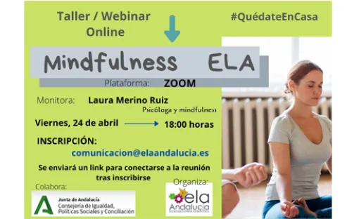 Fuente: ELA Andalucía. La Asociación ELA Andalucía organiza un taller online de Mindfulness para familias con ELA, programado para el próximo viernes 24 de abril, a las 18 horas