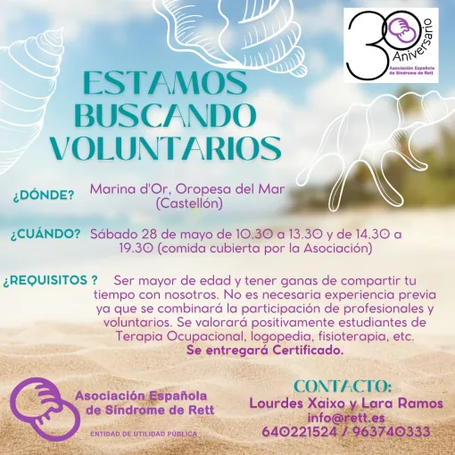 La Asociación Española de Síndrome de Rett busca voluntarios/as para su Encuentro de Familias y Gala Benéfica por su 30 aniversario