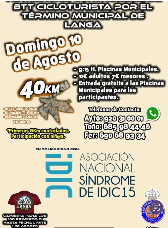 El próximo domingo 10 de agosto, el municipio de Langa (Ávila) celebrará una marcha cicloturista BTT solidaria en apoyo a la Asociación Nacional del Síndrome de IDIC15, una de las entidades miembro de FEDER.
