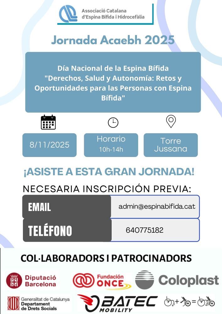 Inscripción obligatoriaGracias a todos por vuestra participación; vuestra asistencia nos ayuda a seguir trabajando en los proyectos de Acaebh por los derechos de las personas con Espina Bífida.