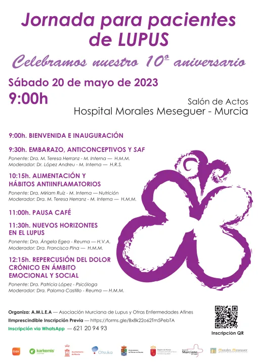 El próximo sábado 20 de mayo, a las 09:00 horas, el Hospital Morales Meseguer de Murcia acogerá una jornada para pacientes con lupus. El objetivo de esta jornada es brindar información y asesoramiento sobre esta enfermedad autoinmunitaria a las personas que la padecen. El lupus es una enfermedad crónica y autoinmunitaria. La enfermedad se caracteriza por la inflamación y daño en diversos órganos y tejidos del cuerpo, lo que puede provocar una variedad de síntomas, como fatiga, dolor articular, erupciones cutáneas y fiebre.