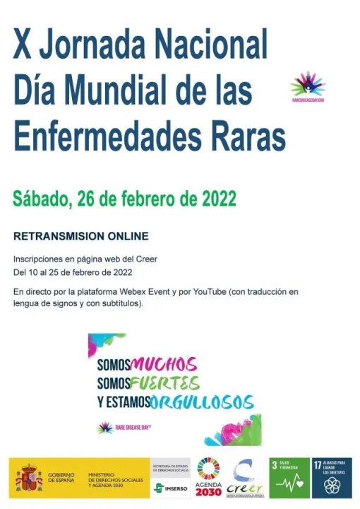 Fuente CREER | El Centro de Referencia Estatal de Atención a Personas con Enfermedades Raras y sus Familias (Creer), del Imserso, organiza el sábado 26 de febrero la X Jornada Nacional del Día Mundial de las Enfermedades Raras.
