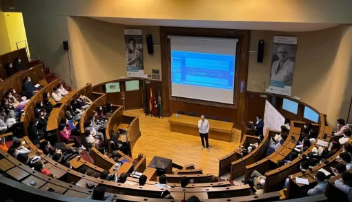 La jornada contó también con la participación de un paciente, David Sánchez González, miembro de la Junta Directiva de FEDER, que padece retinosis pigmentaria, una enfermedad rara ocular de carácter degenerativo. Él contó a los alumnos sobre el papel de los pacientes en la investigación clínica y cómo impactan los medicamentos innovadores en su lucha contra la enfermedad.