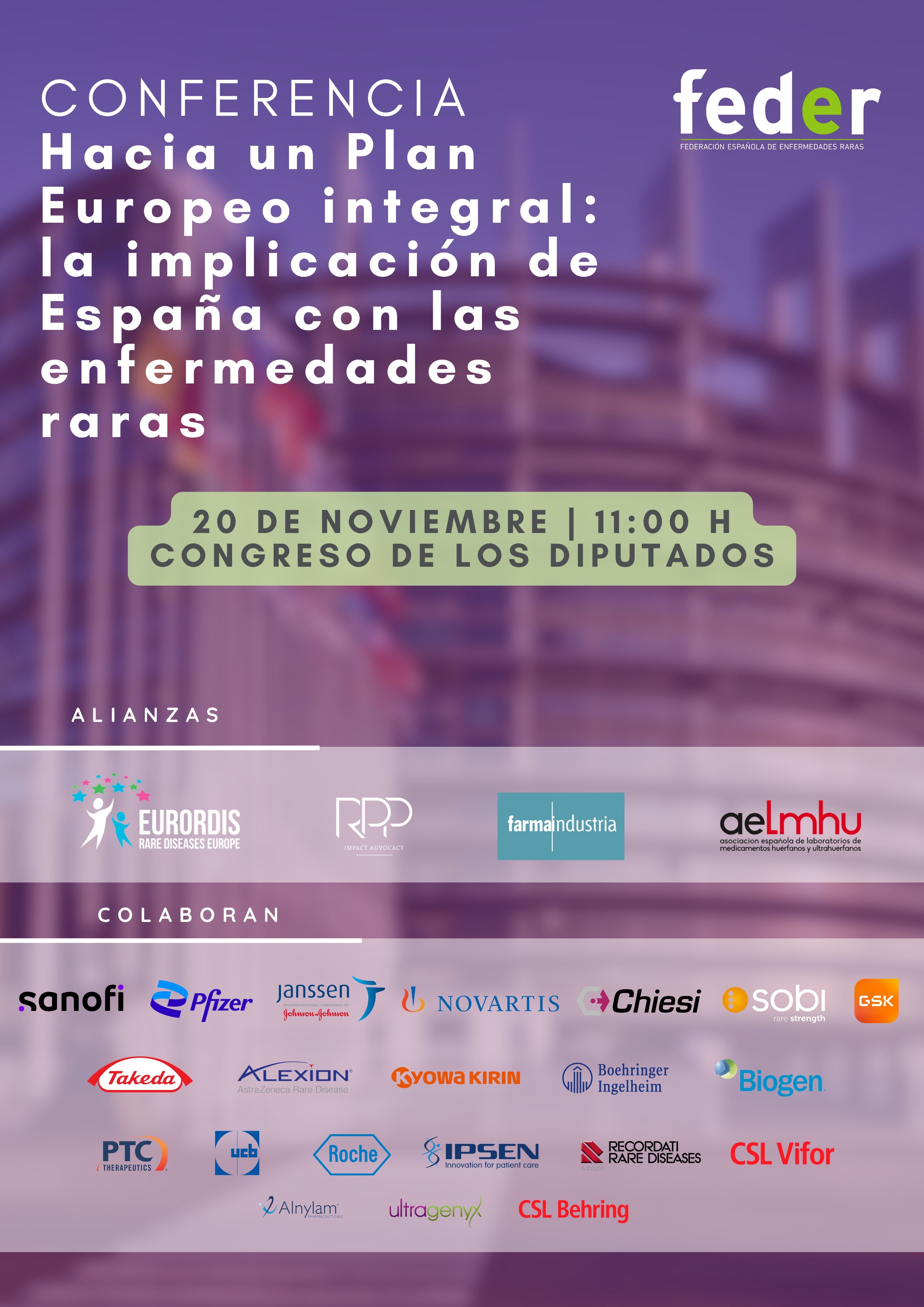 Con este objetivo, te invitamos a reservar en tu agenda esta fecha para poder trabajar con la familia FEDER en el futuro de las políticas españolas y europeas en enfermedades raras. El encuentro se desarrollará el lunes 20 de noviembre, a las 11:00 hrs en la Sala Ernest Llunch del Congreso de los Diputados.