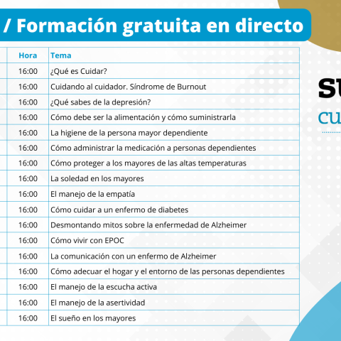 Esta campaña de formación en directo pretende proporcionar a todos los interesados algunos conocimientos fundamentales relacionados con el cuidado y la atención que se le debe prestar a las personas mayores o dependientes.