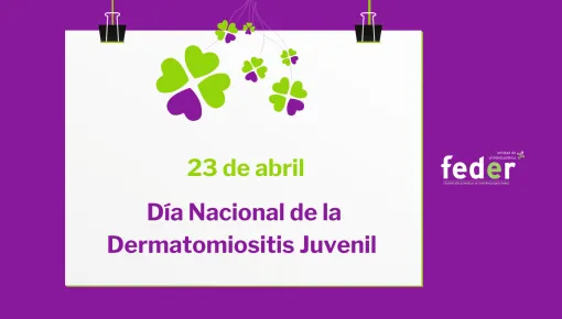 Es por esto que el 23 de abril es una jornada muy importante para el colectivo ya que supone un día para concienciar y dar visbilidad acerca de la realidad de convivir con esta patología. Por ello, desde FEDER mostramos toda nuestra admiración hacia el tejido asociativo que trabaja día a día por mejorar la calidad de vida de quienes conviven con Dermatomiositis Juvenil y sus familias. Entidades como la Asociación Nacional de Dermatomiositis Juvenil (ANADEJU) realizan una labor constante brindando información a las familias, sensibilizando a la sociedad y facilitando la integración en los distintos ámbitos de su vida laboral, social, educativa y personal.