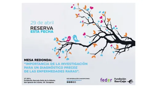 Fundación Ibercaja celebra el próximo lunes 29 de abril la Mesa Redonda 'Importancia de la investigación para un diagnóstico precoz de las enfermedades raras'. La cita, tendrá lugar en el Patio de la Infanta la sede de la Fundación de Zaragoza a las 17:30.
