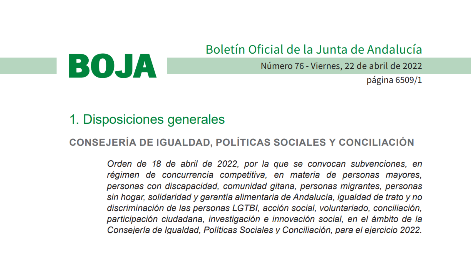 La Conserjería de Igualdad, Políticas Sociales y Conciliación siguiendo la orden de 18 de abril de 2022, por la que se convocan subvenciones, en régimen de concurrencia competitiva, en materia de...