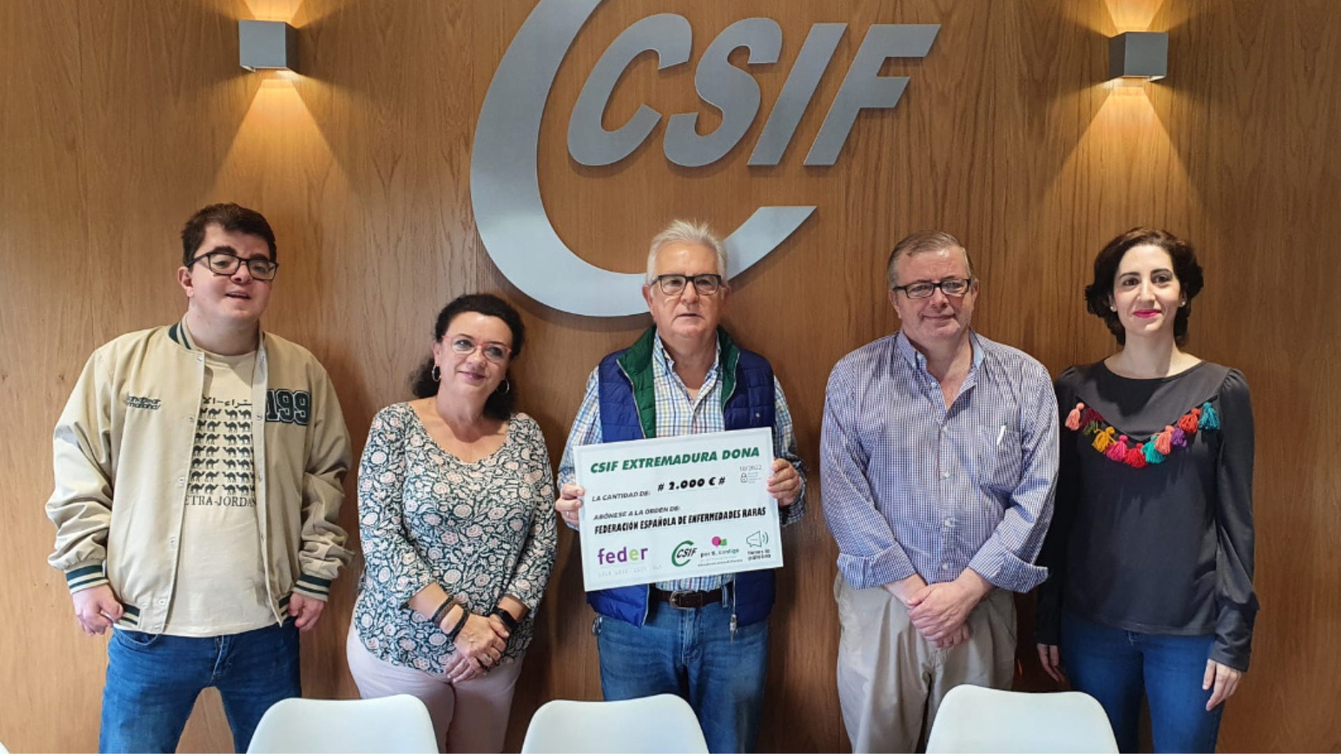 CSIF dona 2.000 euros, recaudados en un curso solidario, a FEDER Extremadura por su apoyo a los pacientes y a sus familias