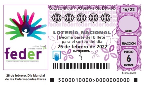 Con motivo del Día Mundial de las Enfermedades Raras, Loterías y Apuestas del Estado dedica el décimo a la Federación Española de Enfermedades Raras (FEDER), con el objetivo de visibilizar la...
