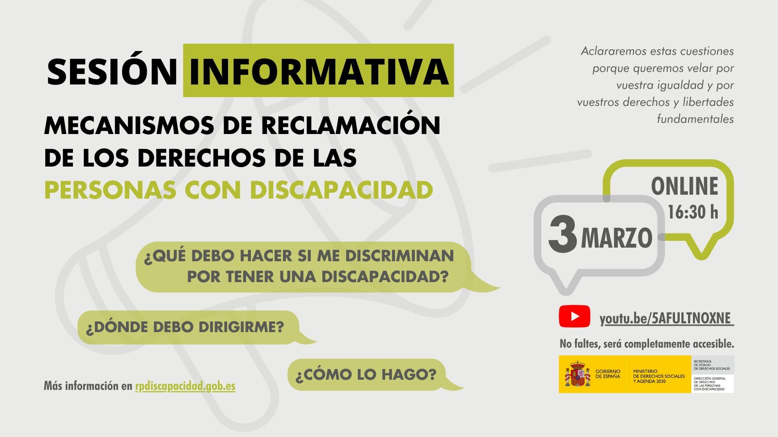 El próximo 3 de marzo se celebra en formato online una sesión informativa acerca de los Mecanismos de reclamación de los derechos de las personas con discapacidad.
