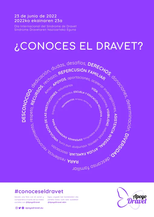 Bajo el lema y hashtag #conoceseldravet, buscan impulsar una movilización social que posicione en la agenda los retos y necesidades del quienes conviven con esta esta «enfermedad neurológica que cursa principalmente con crisis epilépticas no controladas, retraso mental y alteraciones conductuales graves, así como con uno de los índices de mortalidad más elevado entre los síndromes epilépticos» tal y como explican desde la asociación.