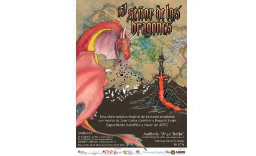 Fuente:AEREIEl Viernes 14 de Febrero a las 19:30 en León, se presenta en el Auditorio “Ángel Barja” la obra “El señor de los dragones”. Este evento es a favor de AEREI (Asociación de Enfermedades Raras con Epilepsia desde la Infancia)" Esta es una pieza músico-teatral de fantasía medieval creada por Mª Lourdes Fdez. Llamazares, con una banda sonora original realizada por el compositor madrileño Juan Carlos Casimiro y con la coreografía de la Escuela de Danza de León. El espectáculo tiene una duración de 80 minutos y está dirigido a un público familiar, así como a los seguidores del género de fantasía medieval
