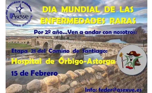 Esta etapa cuenta con 17,3 km y va desde Hospital de Órbigo a Astorga (Castilla y León, España). Al ser una etapa corta, puede realizarla cualquier persona a pesar de no contar con tanta preparación física.Con esta iniciativa se pretende dar visibilidad a las enfermedades raras en el marco de la celebración de su día y aportar más información sobre estas patologías y sobre la asociación Asexve</p><p>