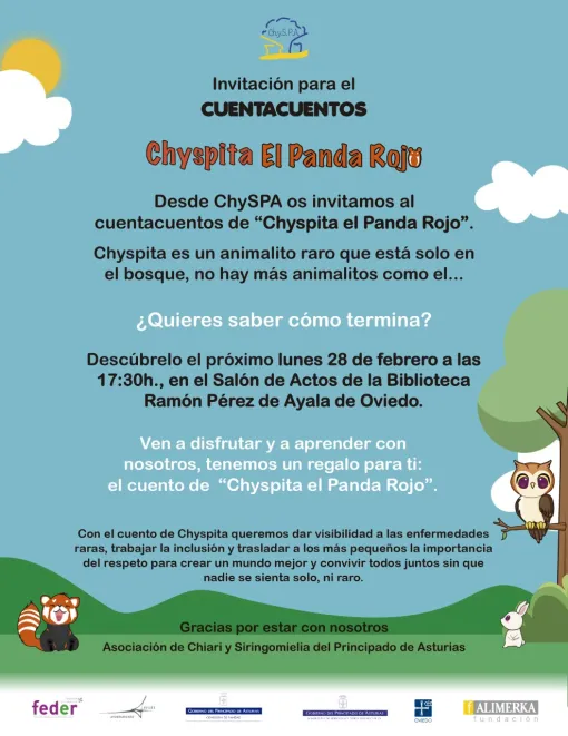 Conscientes de la importancia de la sensibilización para lograr la normalización de las enfermedades raras y el respeto a las diferencias, se pone en marcha una nueva acción de difusión estrenando el cuentacuentos “Chyspita “El Panda Rojo”.