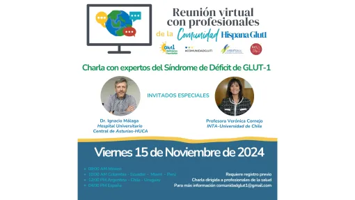 El objetivo es poder seguir difundiendo y visibilizando las particularidades del Déficit de Glut1 entre quienes diagnostican y tratan de la mano de especialistas con experiencia en este síndrome de baja prevalencia como es el Dr. Ignacio Málaga, del Hospital Universitario Central de Asturias - HUCA en España y la Profesora Verónica Cornejo, del INTA de Chile.