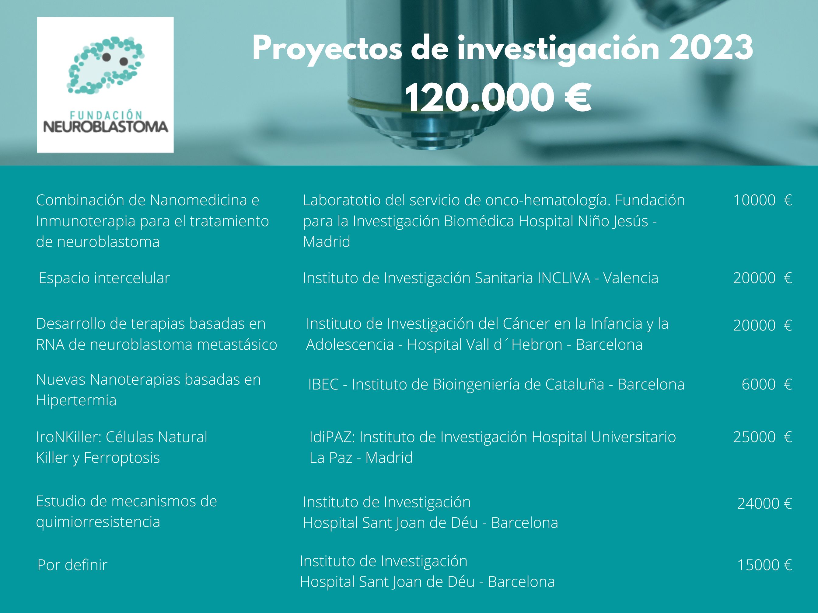 Gracias el apoyo de todos los contribuyentes, esta entidad ha podido donar 120.000 euros a diferentes proyectos de investigación a lo largo del último año. Desde la Fundación Neuroblastoma, esperan que con nuevas iniciativas y vuestra ayuda, esta cifre aumente en 2024.