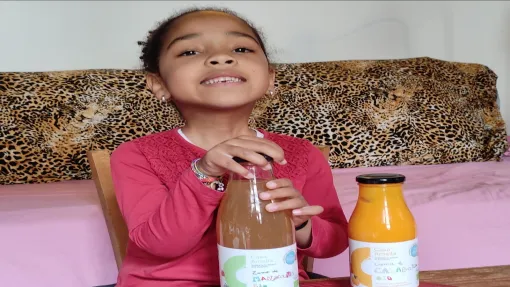 Además, los productos llevan un pedacito de cada niño y niña de la asociación, pues han dibujado ellos mismos las etiquetas, ¡realmente preciosos y además muy creativos! Cada dibujo va acompañado del nombre de cada pequeño artista y de su edad.