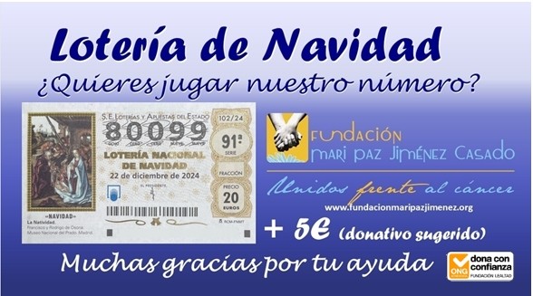 Disponible la Lotería de Navidad de la Fundación Mari Paz Jiménez Casado