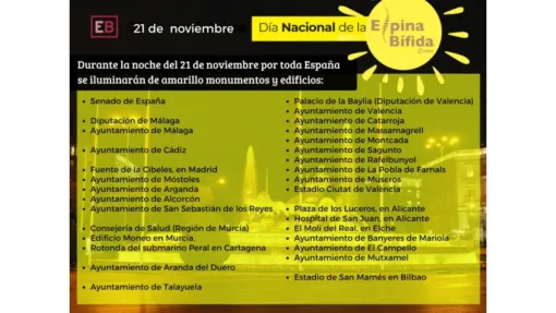 El AMARILLO iluminará España por el Día Nacional de la Espina Bífida: un símbolo de visibilidad y apoyo