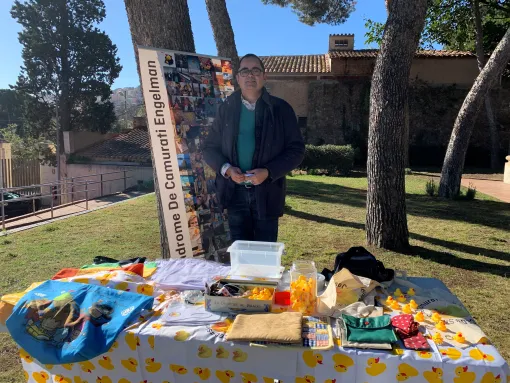 La Asociación de Afectados por el Síndrome Camurati Engelmann celebró el pasado 22 de febrero el Día Internacional de este patología poco frecuente. Para ello, instalaron una mesa informativa en el exterior de la torre Jussana en Barcelona, en el nuevo centro de atención de FEDER. El pato CED, un pato de goma amarillo que es la mascota de la asociación, fue colocado en una balsa en el recinto.