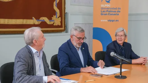 El acto de firma ha contado con la presencia del presidente de la Asociación, Germán López Fuentes, y del tesorero, Francisco Ramón Gil, junto al rector de la ULPGC, Don Luis Serra.