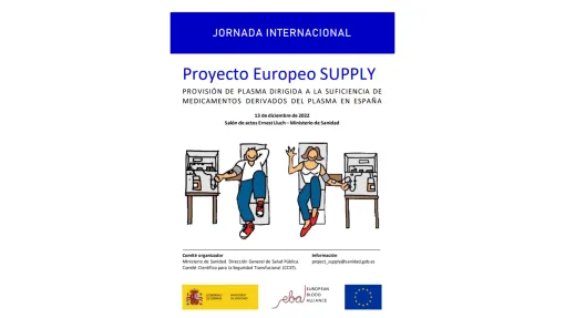 El martes, 13 de diciembre, el Salón de actos Ernest Luch del Ministerio de sanidad en Madrid acoge la Jornada Internacional Proyecto Europeo SUPPLY, dedicada a la provisión de plasma dirigida a la suficiencia de medicamentos derivados de este en nuestro país.