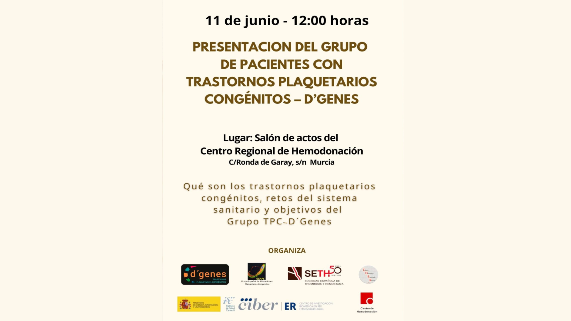 • El Grupo de pacientes con trastornos plaquetarios congénitos – D´Genes realiza su presentación en Murcia