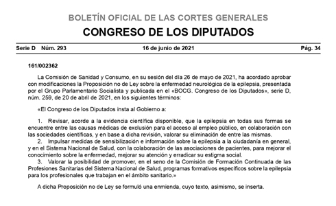 La Asociación Nacional de Personas con Epilepsia (ANPE) lograron el impulso de una Proposición no de Ley (PNL) sobre la enfermedad neurológica de la epilepsia el pasado mes de abril.