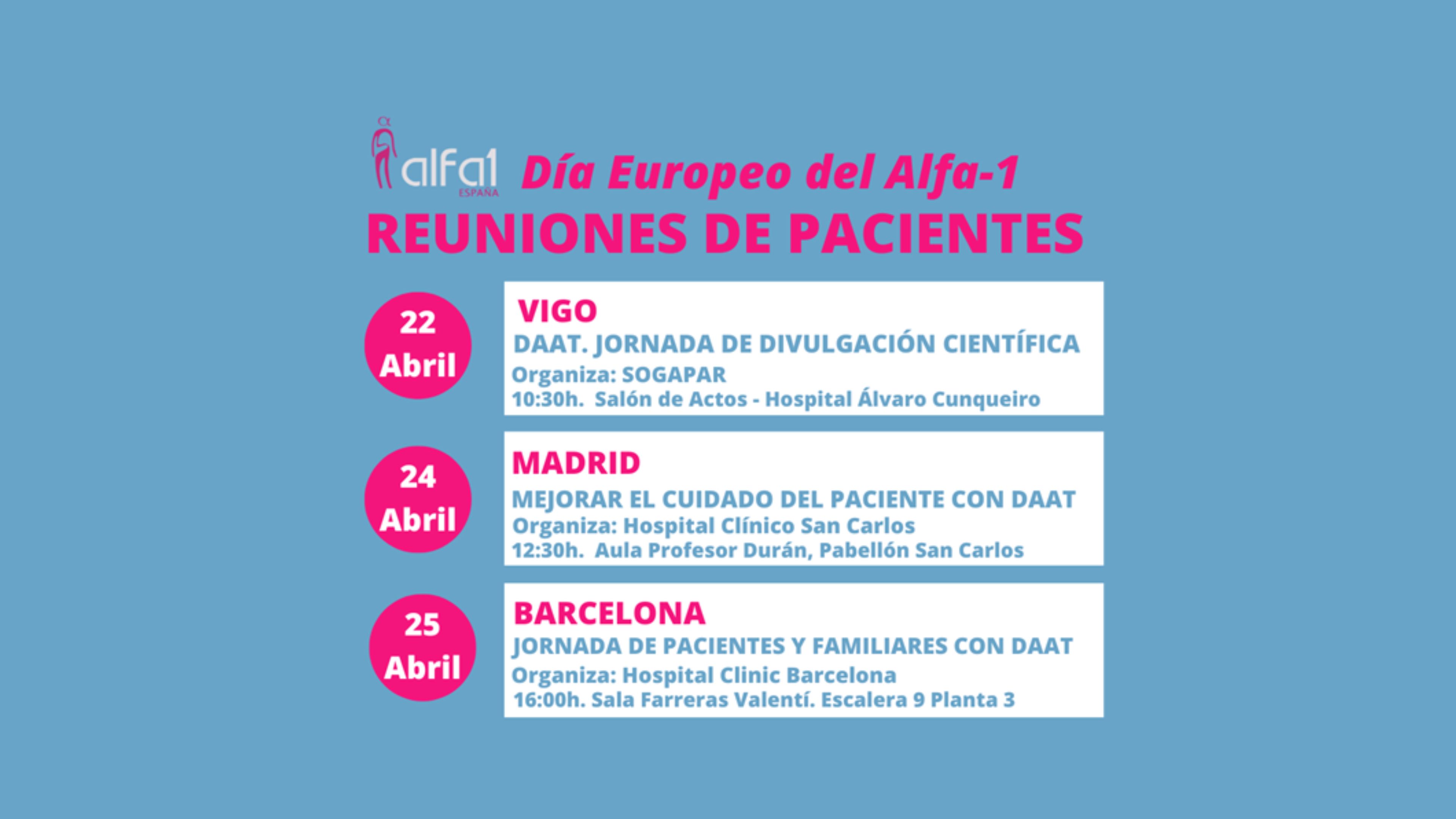 Fuente: Asociación Alfa-1 España | Los hospitales de Álvaro Cunqueiro de Vigo, Clínico San Carlos de Madrid y Clínic Barcelona, acogen en los próximos días reuniones destinadas a pacientes...
