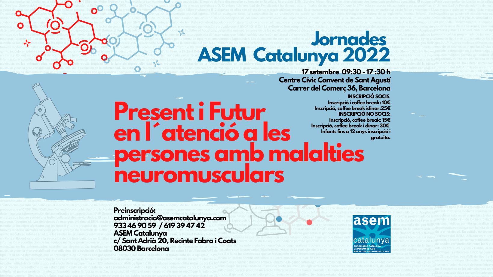La Associació Catalana Persones amb Malalties Neuromusculars (ASEM) anuncia con ilusión que vuelven las Jornadas presenciales de su entidad a Cataluña, concretamente se celebrará el 17 de...