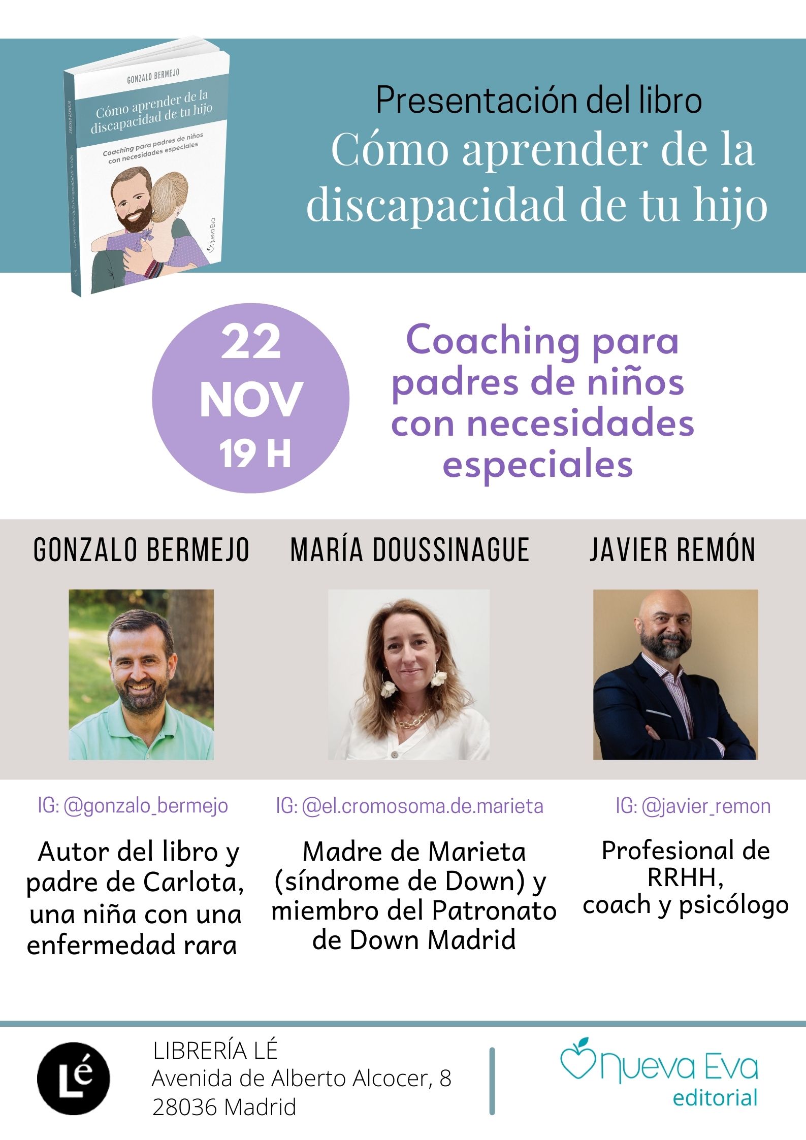El 22 de noviembre tendrá lugar la presentación del libro Cómo aprender de la discapacidad de tu hijo, de la editorial Nueva Eva. A través de su experiencia, Gonzalo Bermejo, Coach Ejecutivo y...