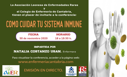 La Asociación Leonesa de Enfermedades Raras y el Colegio de Enfermería de Cantabria tienen el placer de invitarte a la conferencia 'Cómo cuidar tu Sistema Inmune', el cual se celebrará el...