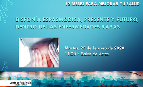 Fuente: AESDE Mañana martes 25 de febrero de 2020, se celebra de 11:00 a 13:30 horas en el Salón de Actos del Hospital Universitario Puerta del Mar, una jornada titulada “Disfonía Espasmódica,...
