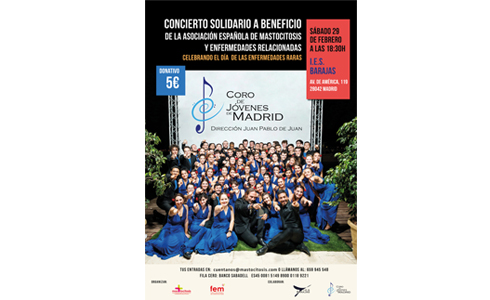 El sábado 29 de Febrero, Día Mundial de las Enfermedades Raras, se realizará un concierto solidario en Madrid a beneficio de la Asociación de Mastocitosis y Enfermedades...Estatal