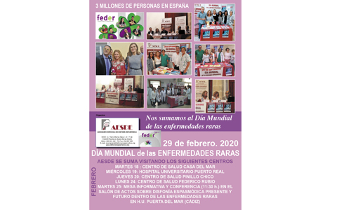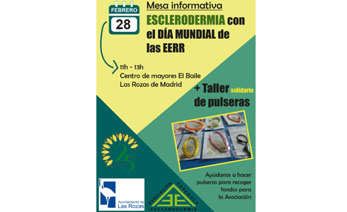 Fuente: AEE La Asociación Española de Esclerodermia (AEE) para celebrar el Día Mundial de las Enfermedades Raras, ha puesto en marcha una serie de actividades para el 28 de Febrero y el 1 de Marzo....