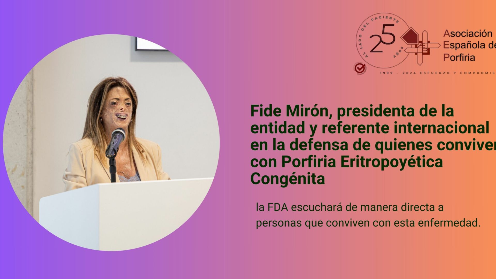 Fide Mirón, presidenta de la Asociación Española de Porfiria, llevará la voz de los pacientes a la FDA en Washington