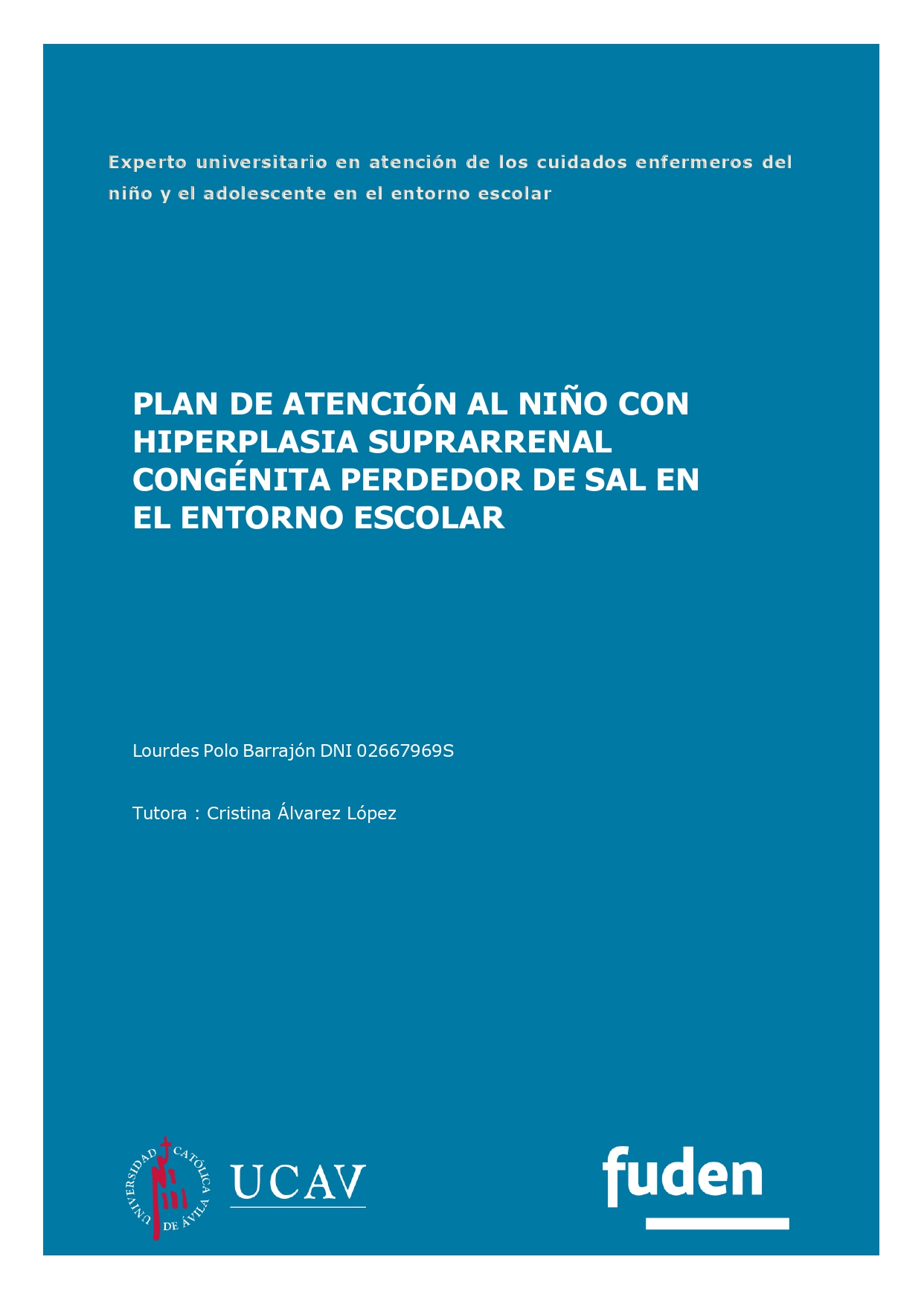 PLAN DE ATENCIÓN AL NIÑO CON HIPERPLASIA SUPRARRENAL CONGÉNITA PERDEDOR DE SAL EN EL ENTORNO ESCOLAR