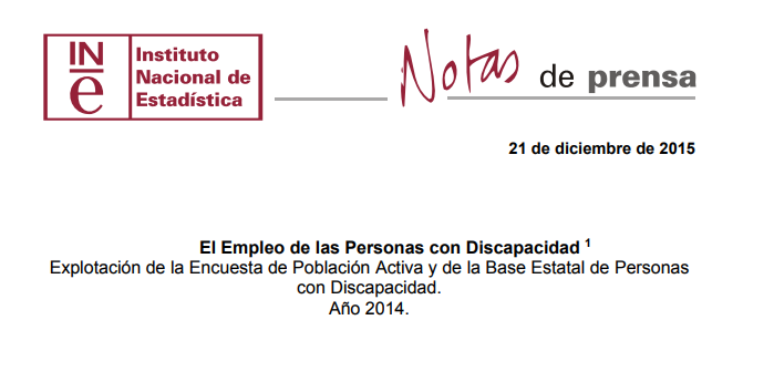 Explotación de la Encuesta de Población Activa y de la Base Estatal de Personas con Discapacidad desde el Instituto Nacional de Estadística para el año 2014, donde se analiza la situación laboral de las personas con discapacidad para este año.