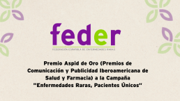 - 2014 | Premio ASPID Oro "ER, pacientes únicos"